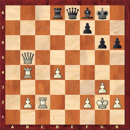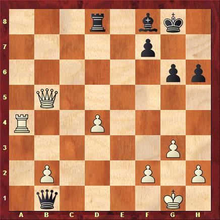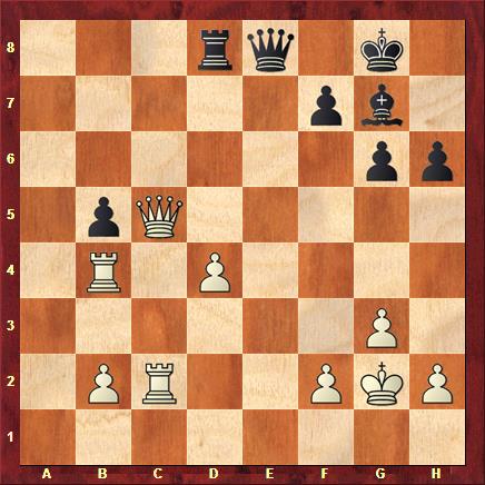 On voit l’ idée d’Adams : la dame blanche doit abandonner la défense de la Tc2, qui est cueillie par l’attaque double De4+.
