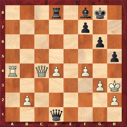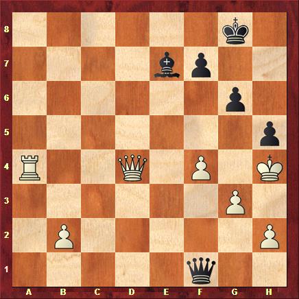 Abandon à cause de 45.Dxd4 Df1+ 46.Rh4 Fe7+ suivi du mat.