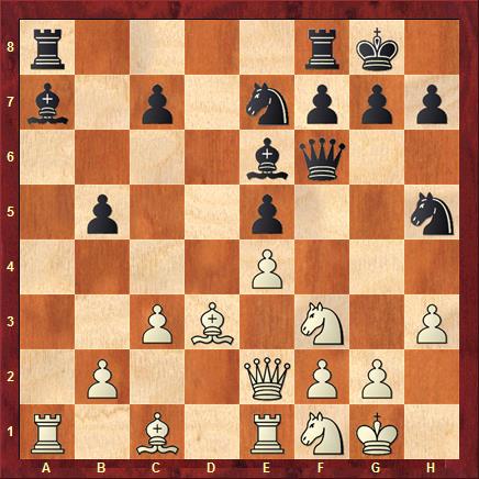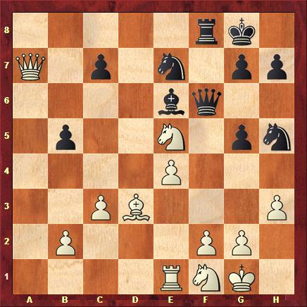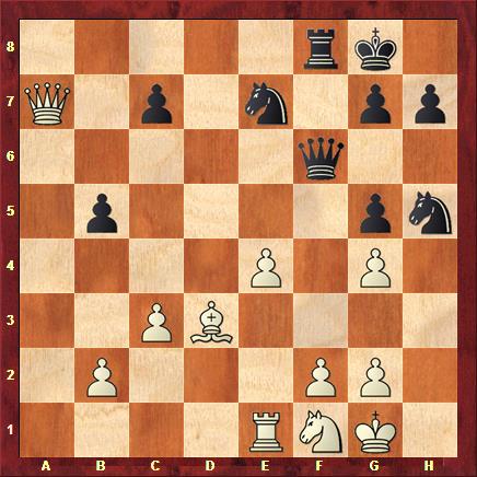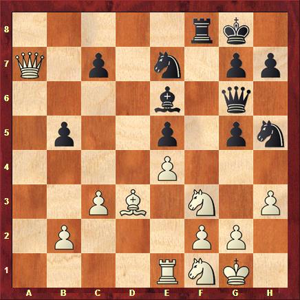 18.Fxb5!? gagne un pion, mais Adams veut plus que ça. La réplique 18…Fxf2+? est mauvaise : 19.Dxf2 Txa1 20.Fg5! Txe1 21.Fxf6 Txf1+ 22.Fxf1 Cxf6 23.Dc5!?+-
