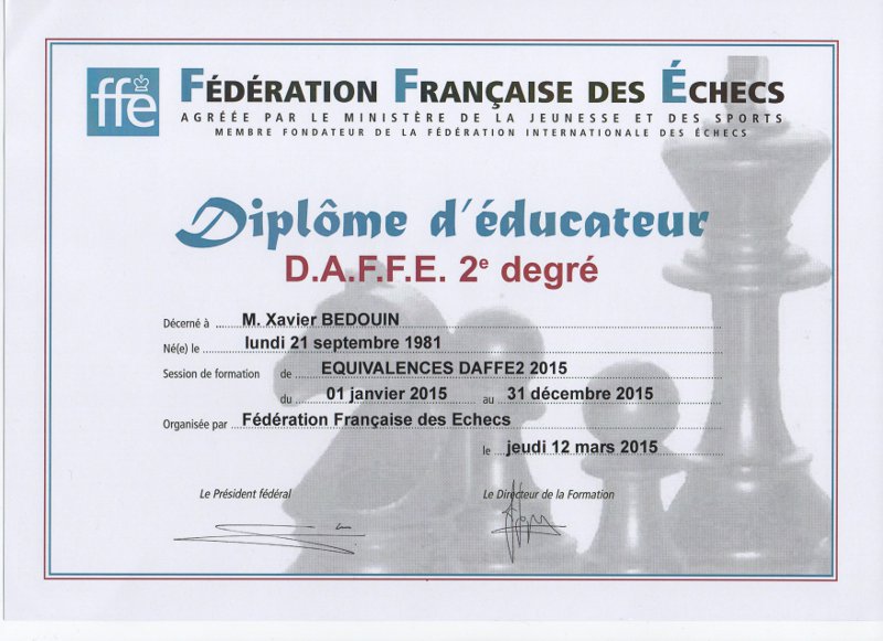 | 2024 | décembre | Certificat de Qualification Professionnelle Animateur d’échecs |